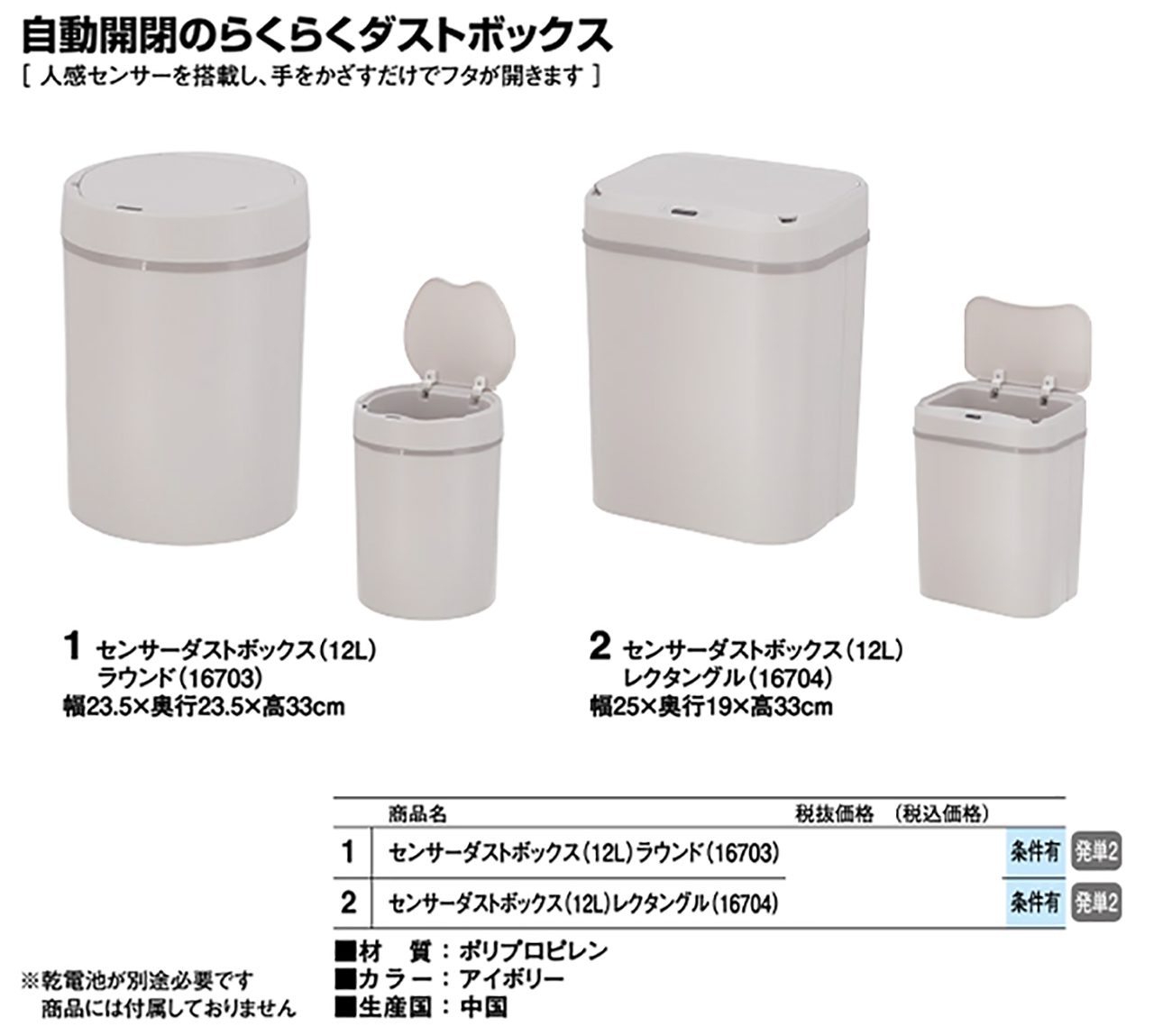- センサーダストボックス(12L) レクタングル(16704) 税抜5, 120円 (税込5, 632円)