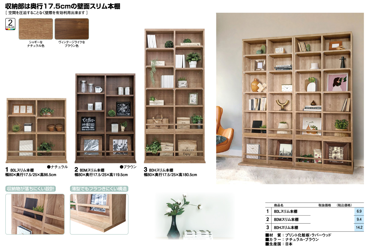 - 80Lスリム本棚 税抜33, 600円 (税込36, 960円)