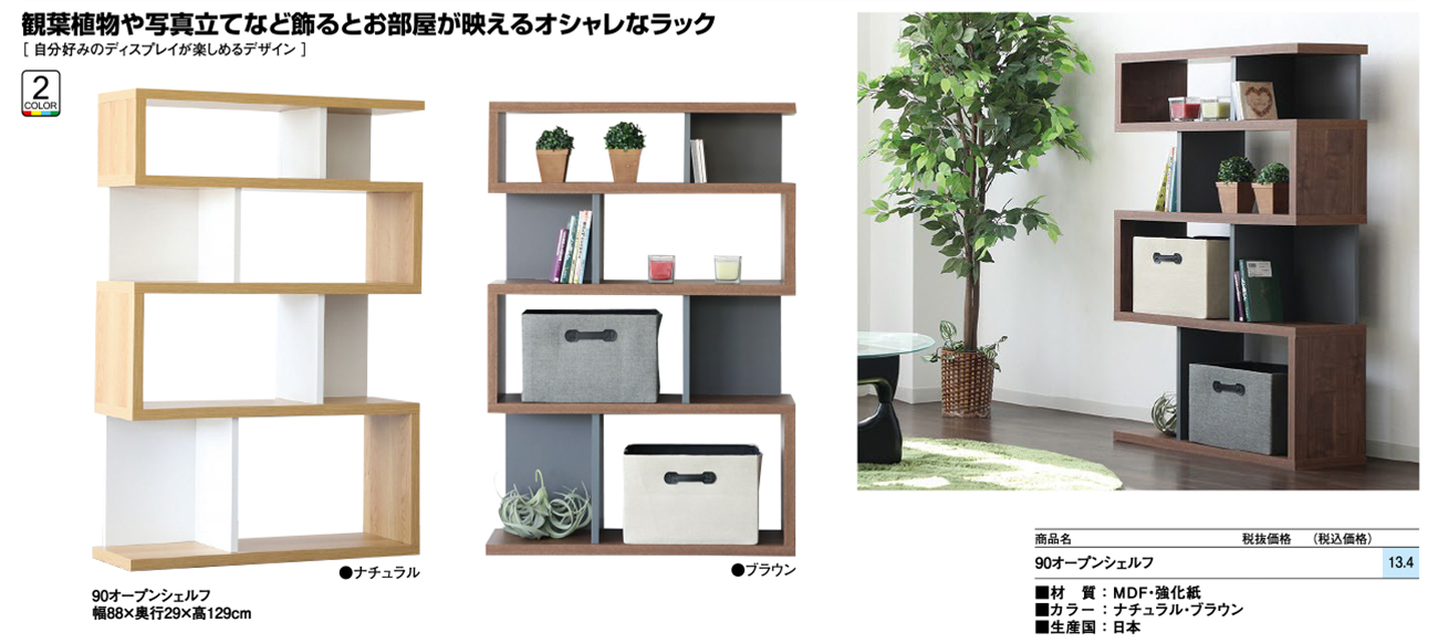 - 90オープンシェルフ 税抜33, 120円 (税込36, 432円)
