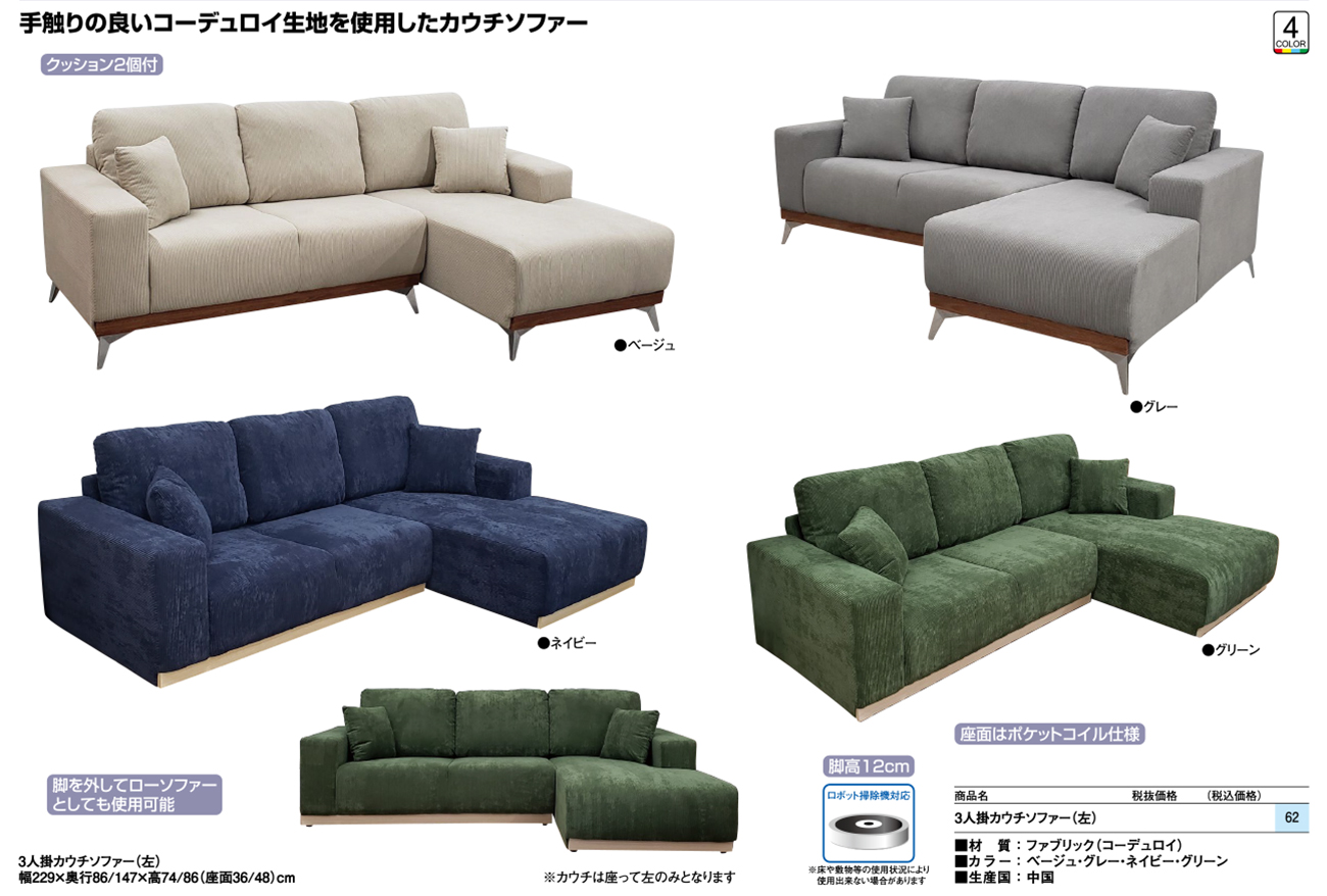 - 3人掛カウチソファー(左) 税抜94, 160円 (税込103, 576円)