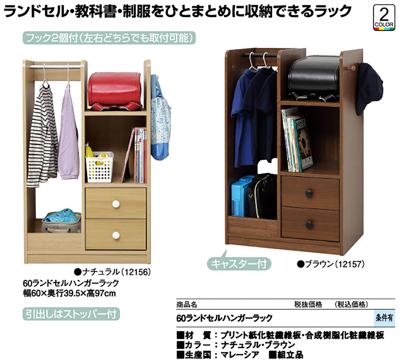- 60ランドセルハンガーラック 税抜23, 760円 (税込26, 136円)