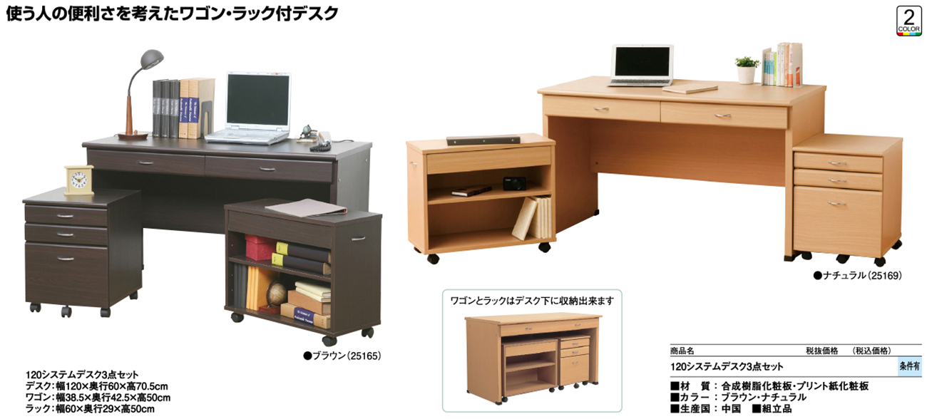 - 120システムデスク3点セット 税抜57, 920円 (税込63, 712円)