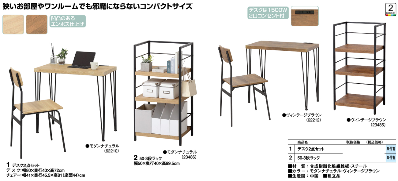 - デスク2点セット 税抜25, 920円 (税込28, 512円)