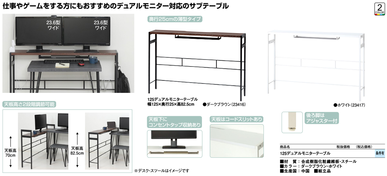 - 125デュアルモニターテーブル 税抜21, 920円 (税込24, 112円)