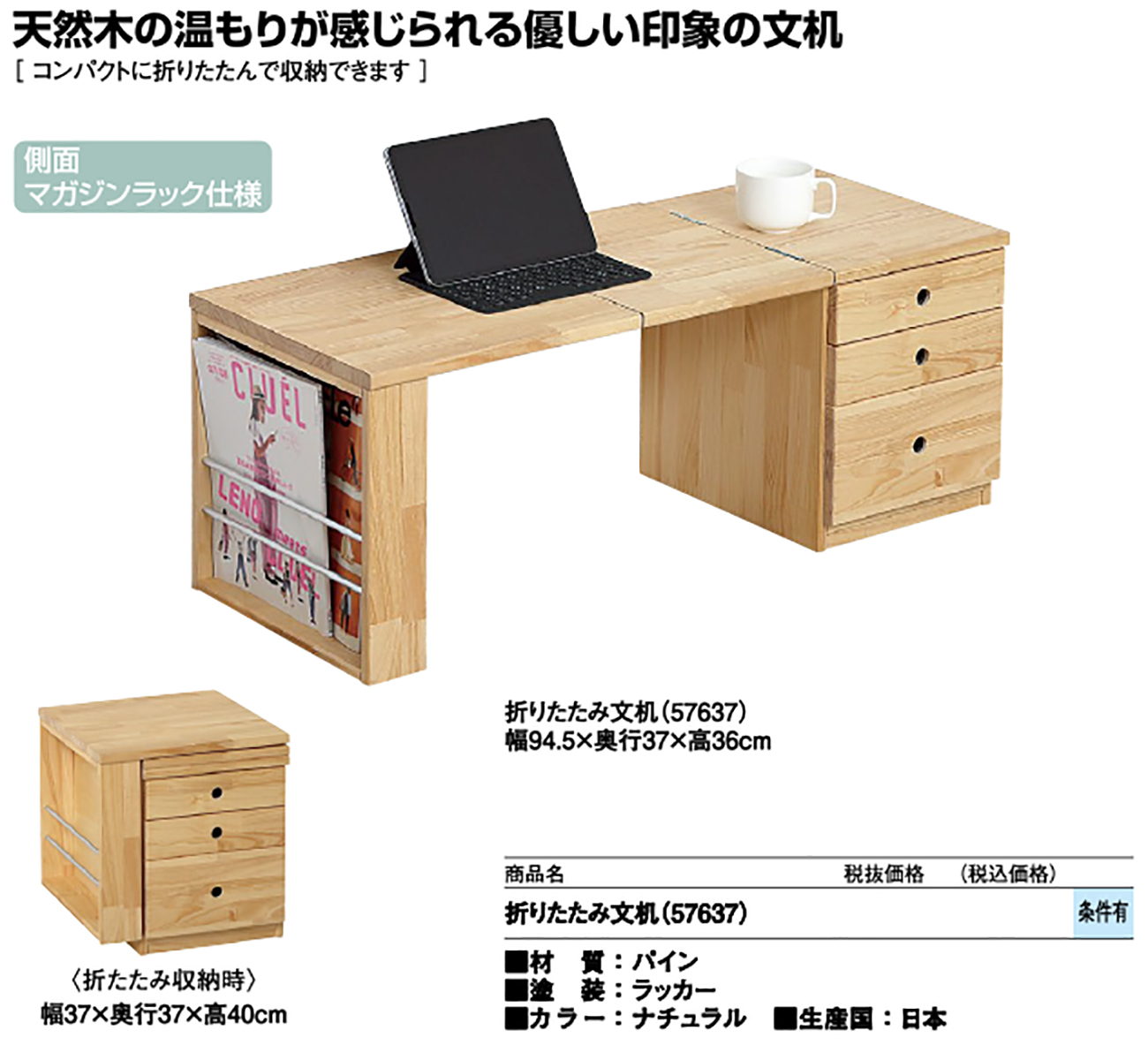 • 折りたたみ文机(57637) 税抜34, 160円 (税込37, 576円)