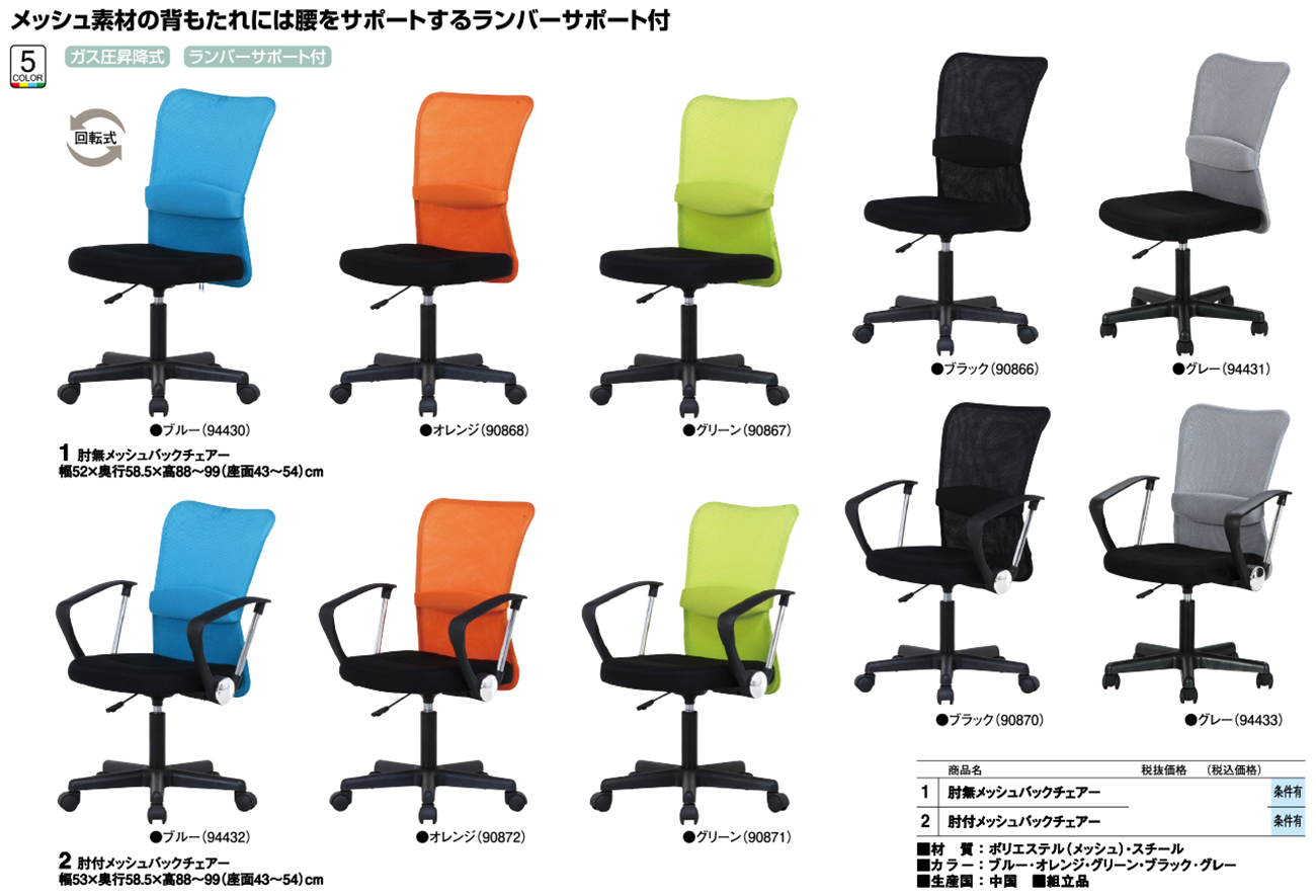 - 肘無メッシュバックチェアー 税抜10, 160円 (税込11, 176円)