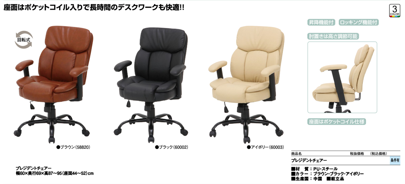 - プレジデントチェアー 税抜25, 600円 (税込28, 160円)