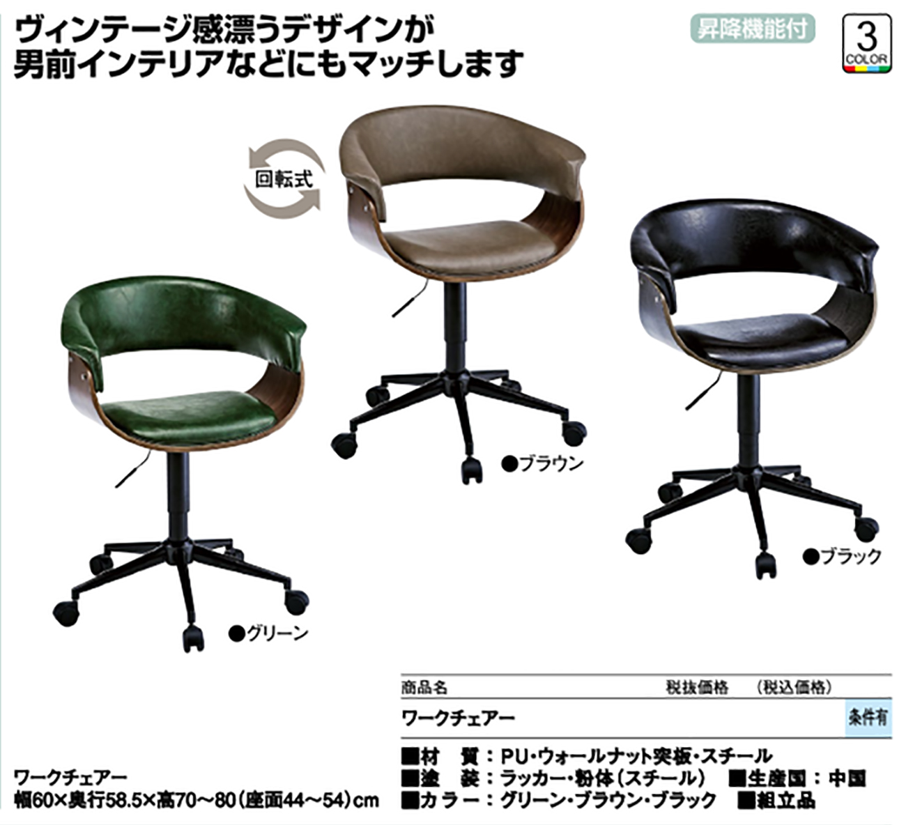 - ワークチェアー 税抜30, 720円 (税込33, 792円)