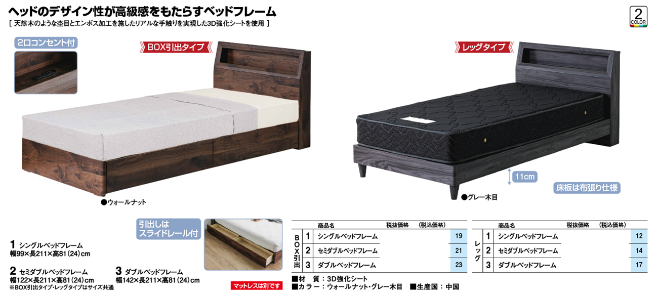 - Dベッドフレーム(BOX) 税抜57, 360円 (税込63, 096円)