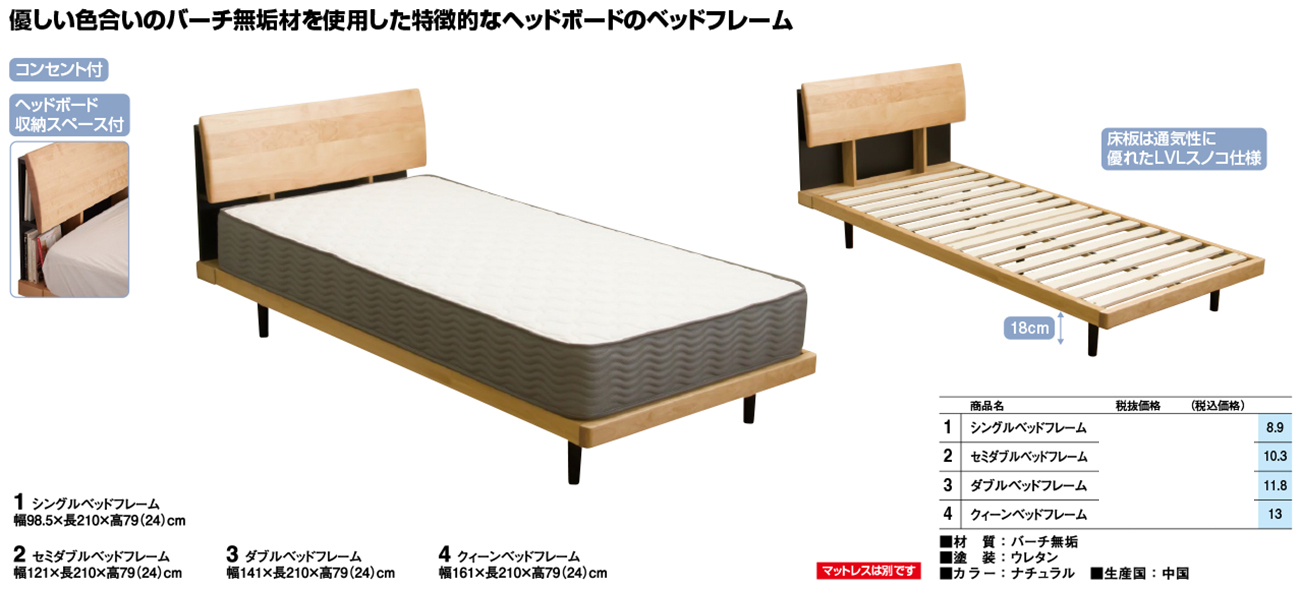 - Qベッドフレーム 税抜102, 160円 (税込112, 376円)