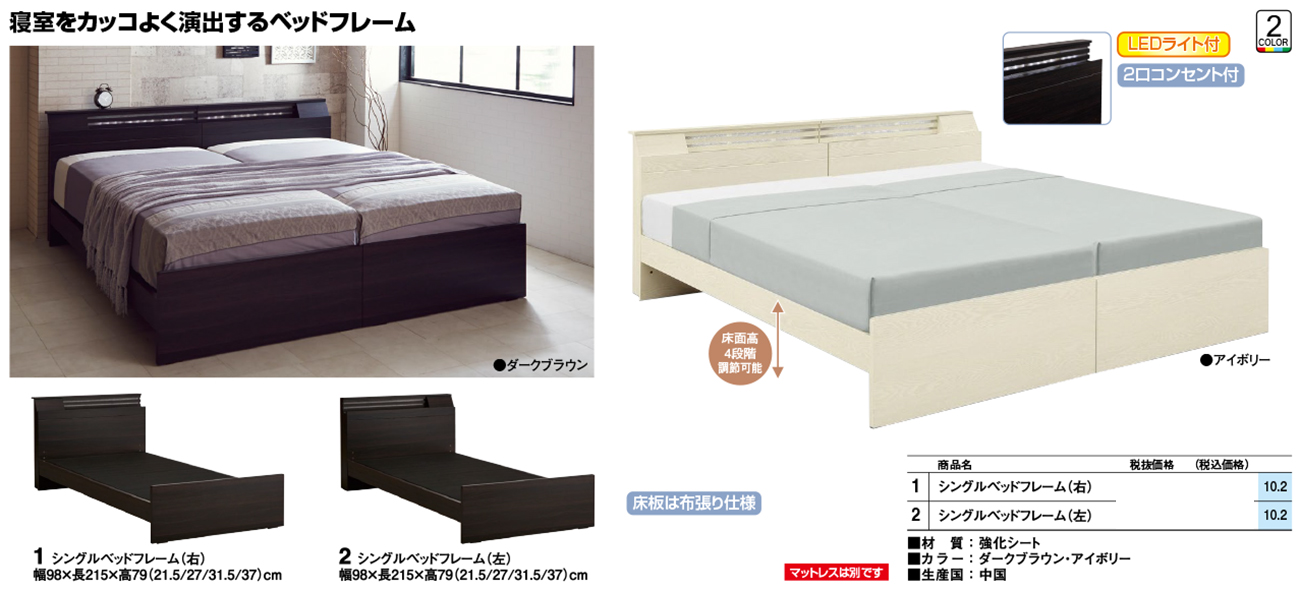 • Sベッドフレーム(左) 税抜41, 120円 (税込45, 232円)
