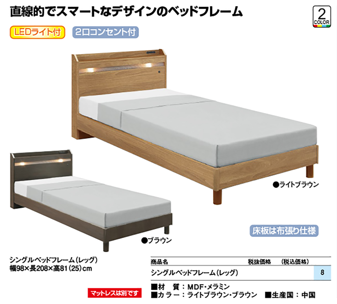 - Sベッドフレーム(レッグ) 税抜29, 360円 (税込32, 296円)