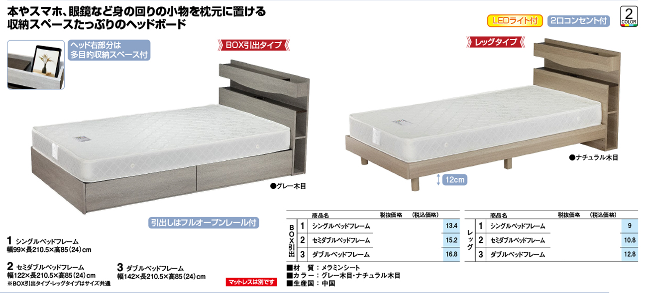 • Sベッドフレーム(BOX) 税抜54, 400円 (税込59, 840円)