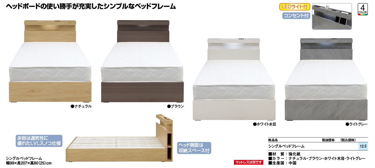 - Sベッドフレーム 税抜31, 360円 (税込34, 496円)