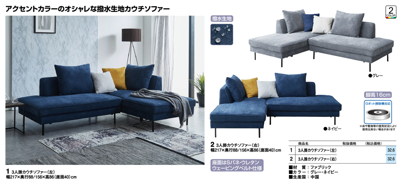 - 3人掛カウチソファー(左) 税抜136, 000円 (税込149, 600円)