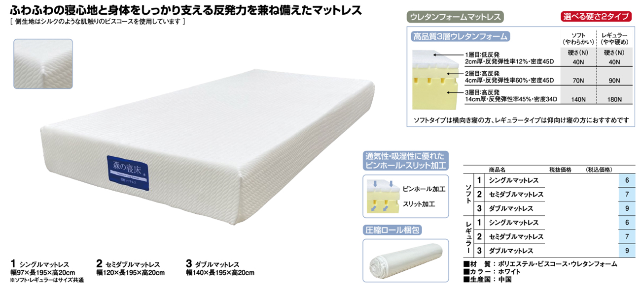 - Sマットレス(ソフト) 税抜60, 400円 (税込66, 440円)