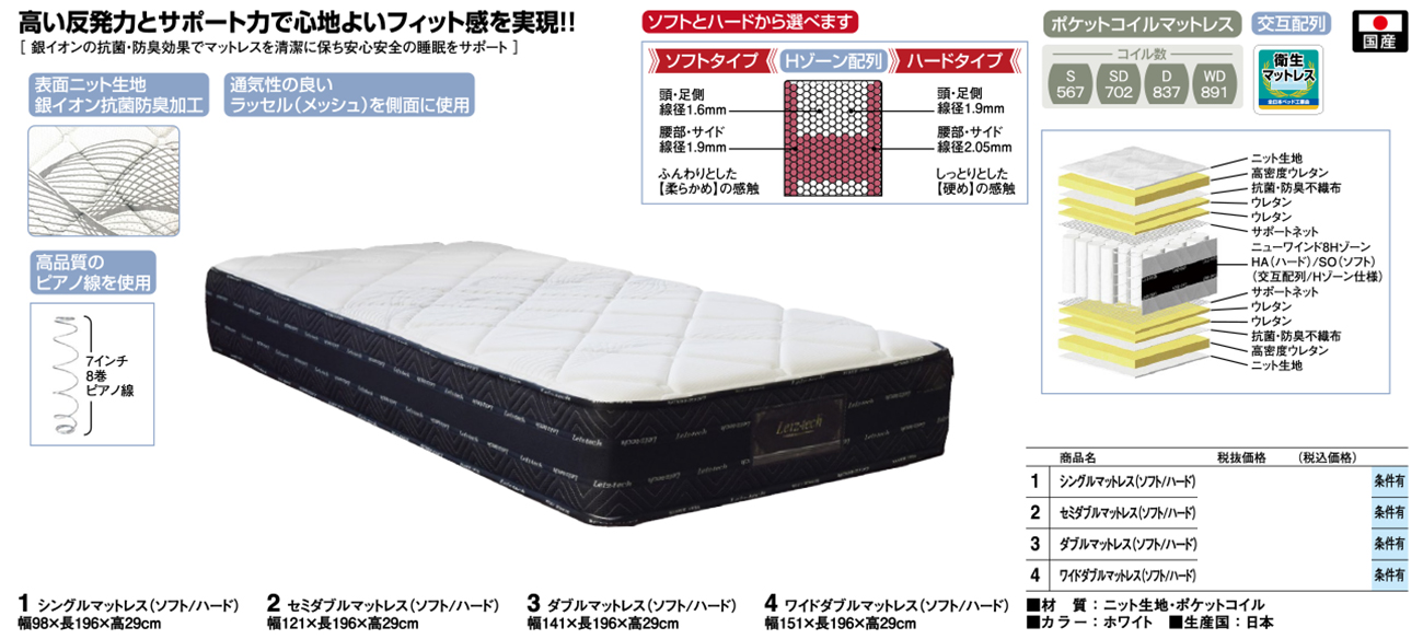 - Sマットレス(ソフト/ハード) 税抜164, 000円 (税込180, 400円)