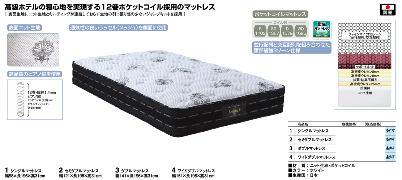 - WDマットレス 税抜377, 360円 (税込415, 096円)