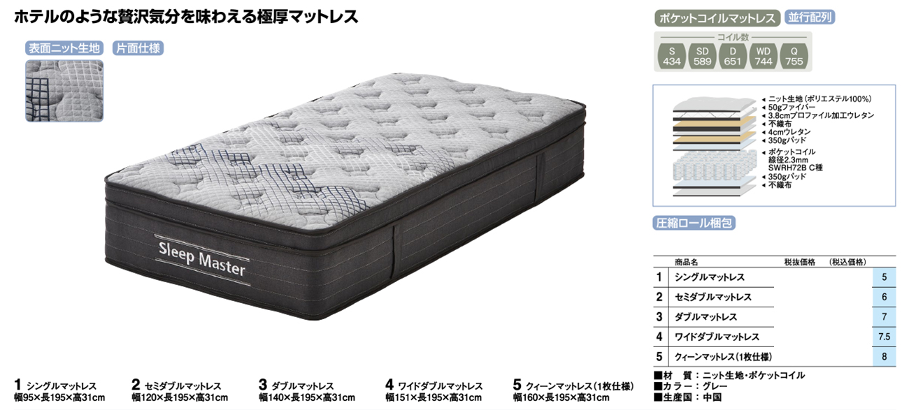 - SDマットレス 税抜43, 760円 (税込48, 136円)