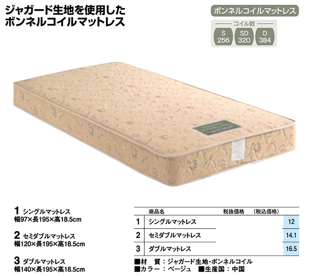 - Sマットレス 税抜21, 600円 (税込23, 760円)