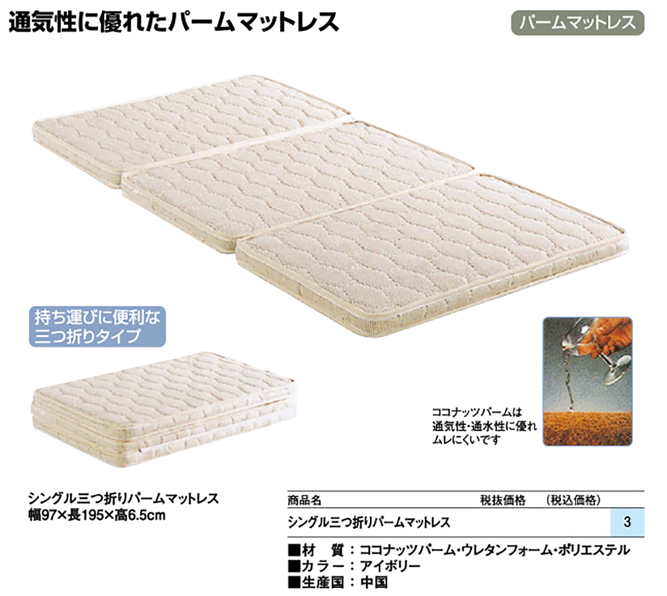- S三つ折りパームマットレス 税抜21, 360円 (税込23, 496円)