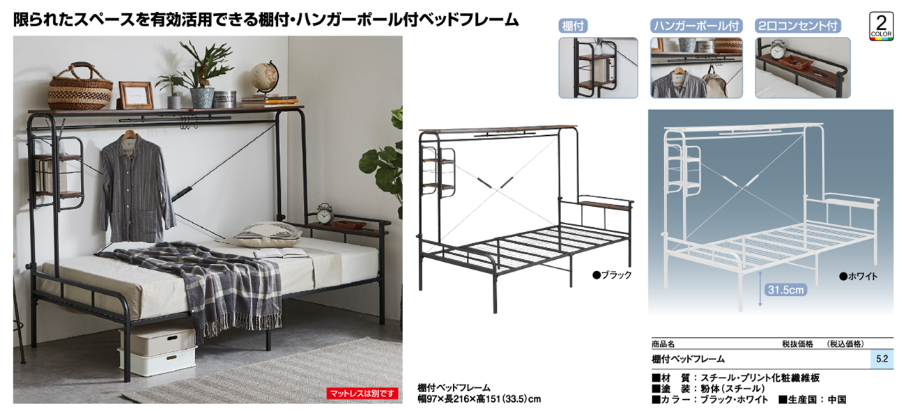 - 棚付ベッドフレーム 税抜61, 600円 (税込67, 760円)