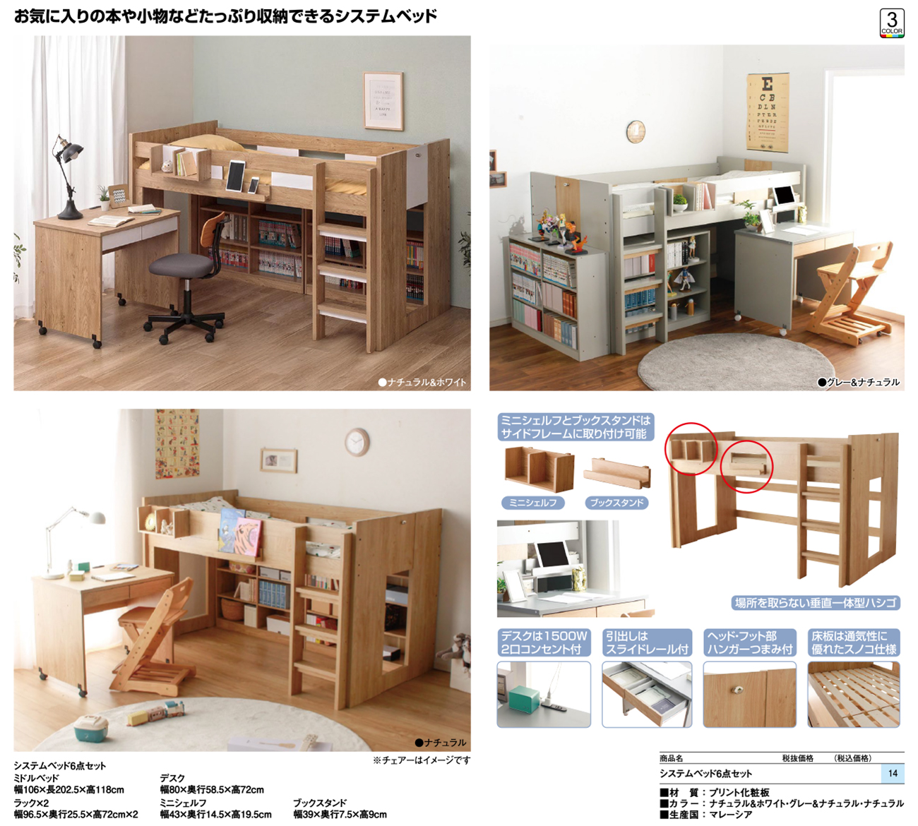 • システムベッド6点セット 税抜102, 160円 (税込112, 376円)