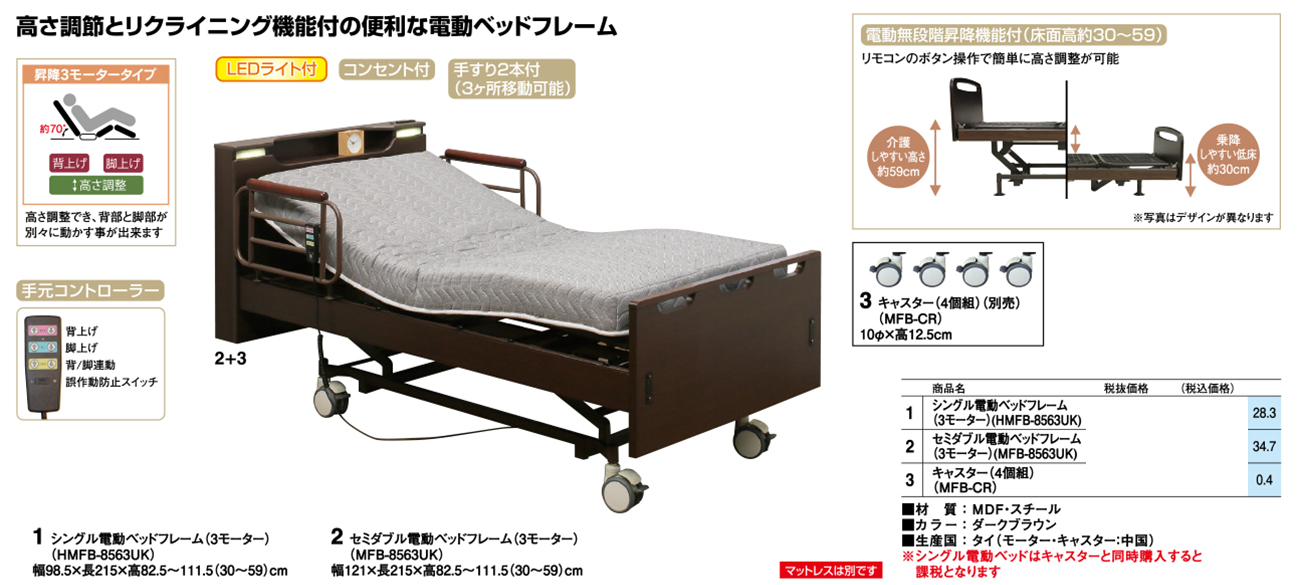 - SD電動ベッドフレーム(3モーター)(MFB-8563UK) 税抜288, 000円 (税込316, 800円)