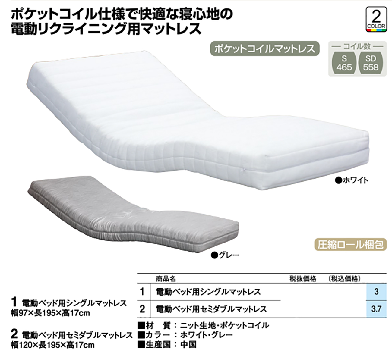 • 電動ベッド用SDマットレス 税抜56, 000円 (税込61, 600円)