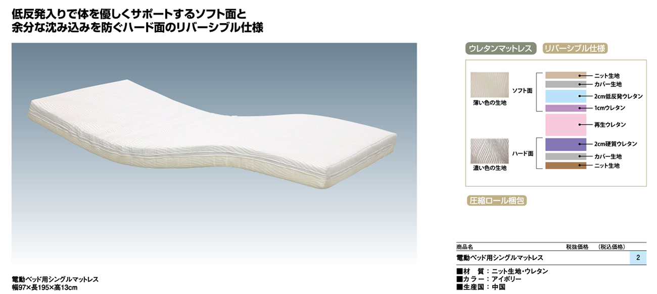 - 電動ベッド用Sマットレス 税抜45, 600円 (税込50, 160円)