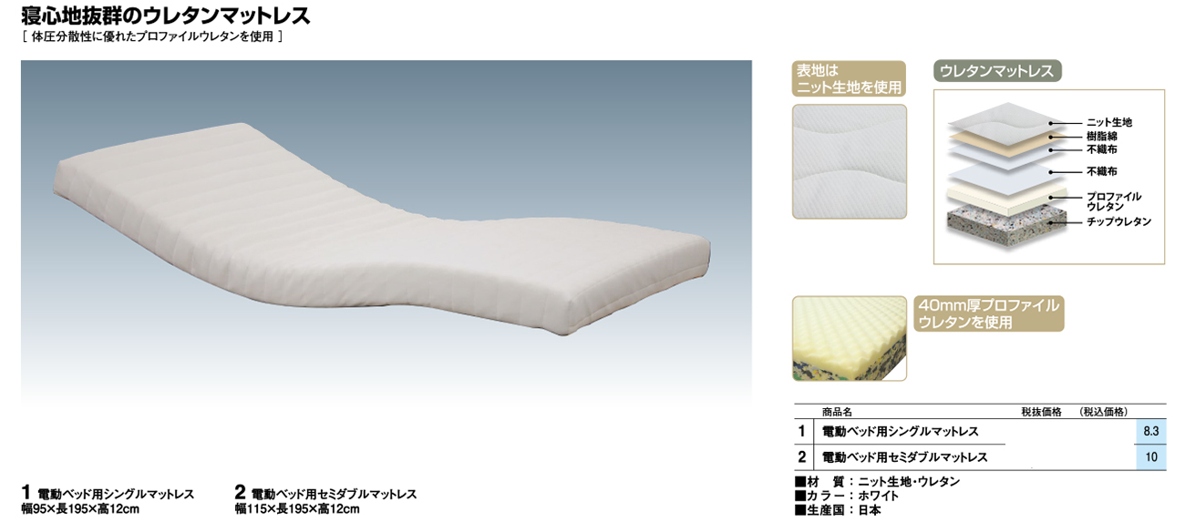 - 電動ベッド用Sマットレス 税抜25, 600円 (税込28, 160円)