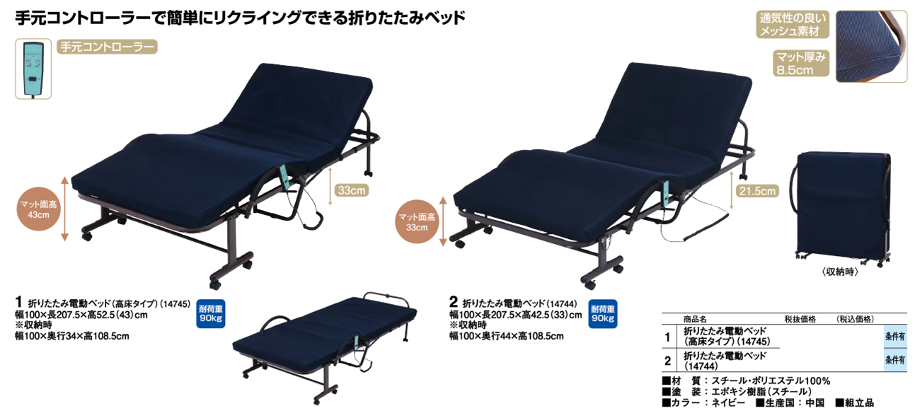 - 折りたたみ電動ベッド(高床タイプ) (14745) 税抜74, 720円 (税込82, 192円)