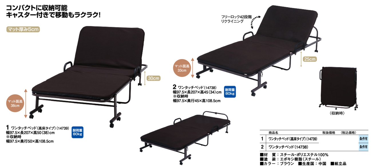 - ワンタッチベッド(高床タイプ) (14739) 税抜34, 720円 (税込38, 192円)