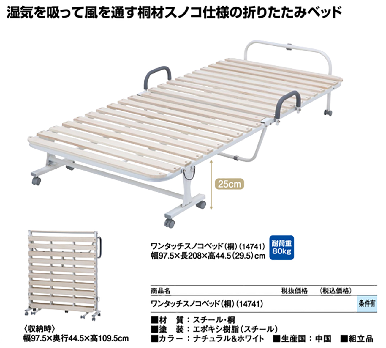• ワンタッチスノコベッド(桐)(14741) 税抜28, 800円 (税込31, 680円)