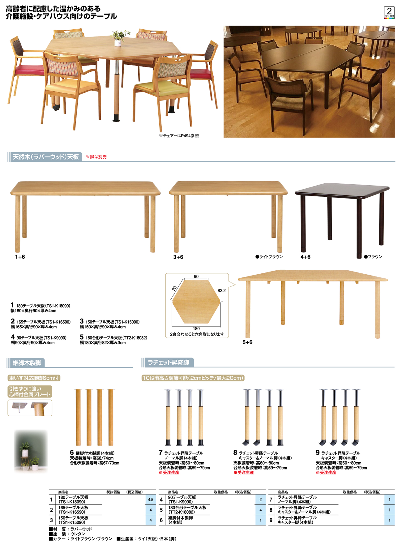 - ラチェット昇降テーブル キャスター&ノーマル脚(4本組) 税抜75, 600円 (税込83, 160円)