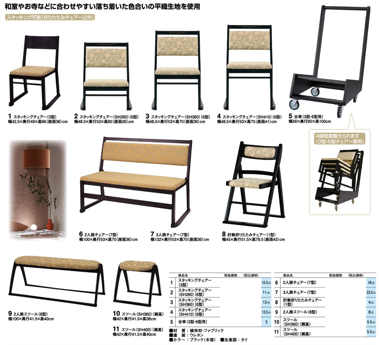 - スタッキングチェアー(SH260)(6型) 税抜31, 520円 (税込34, 672円)