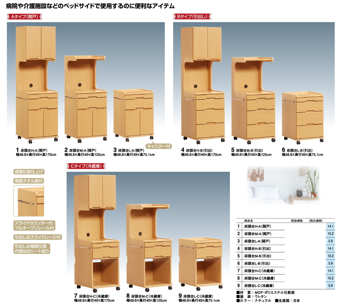 - 床頭台M-C(冷蔵庫) 税抜58, 720円 (税込64, 592円)