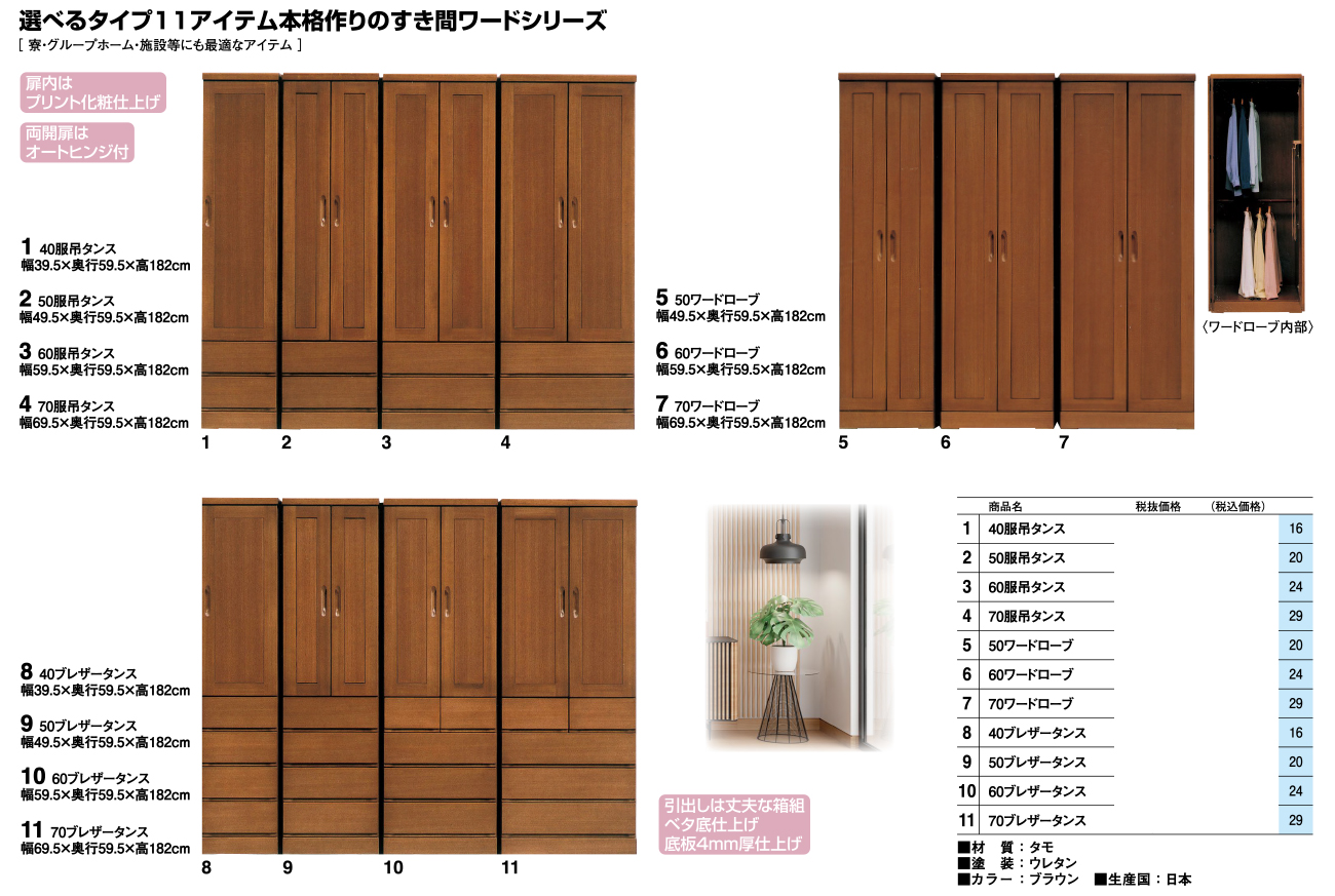 - 70服吊タンス 税抜100, 000円 (税込110, 000円)