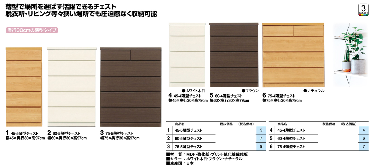 - 45-5薄型チェスト 税抜30, 720円 (税込33, 792円)