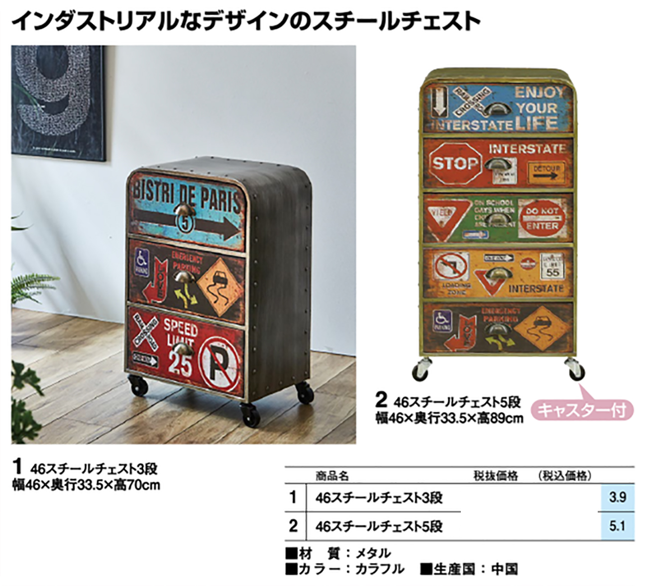 • 46スチールチェスト5段 税抜33, 600円 (税込36, 960円)