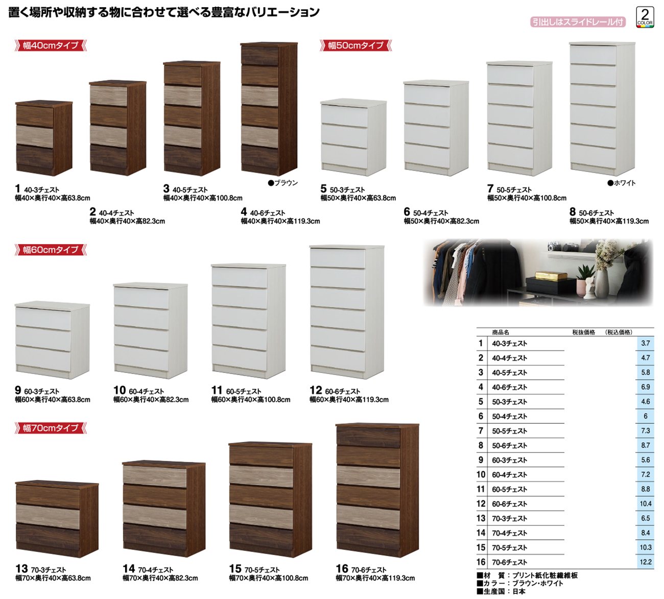 - 40-3チェスト 税抜18, 240円 (税込20, 064円)
