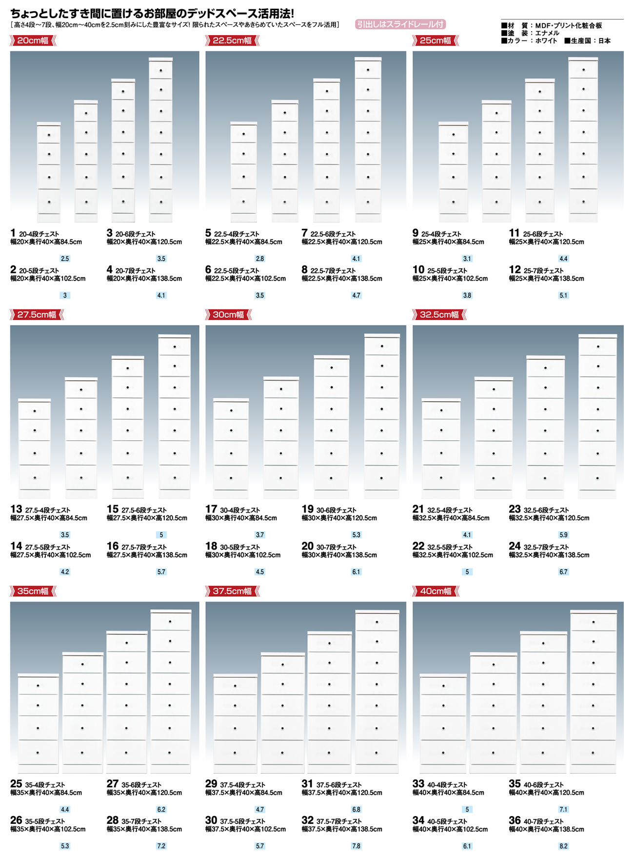 - 25-4段チェスト 税抜37, 360円 (税込41, 096円)