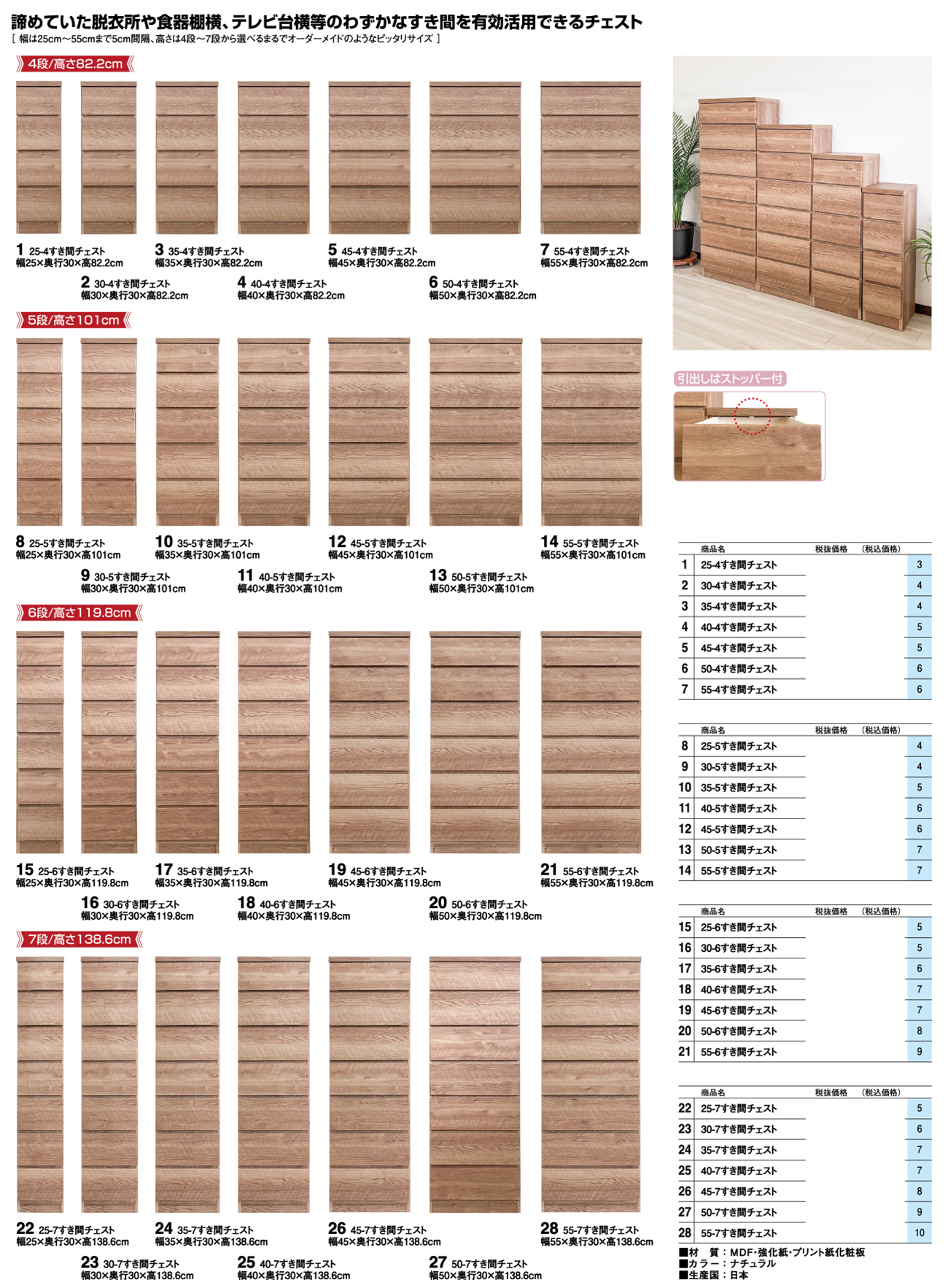 - 25-4すき間チェスト 税抜33, 920円 (税込37, 312円)