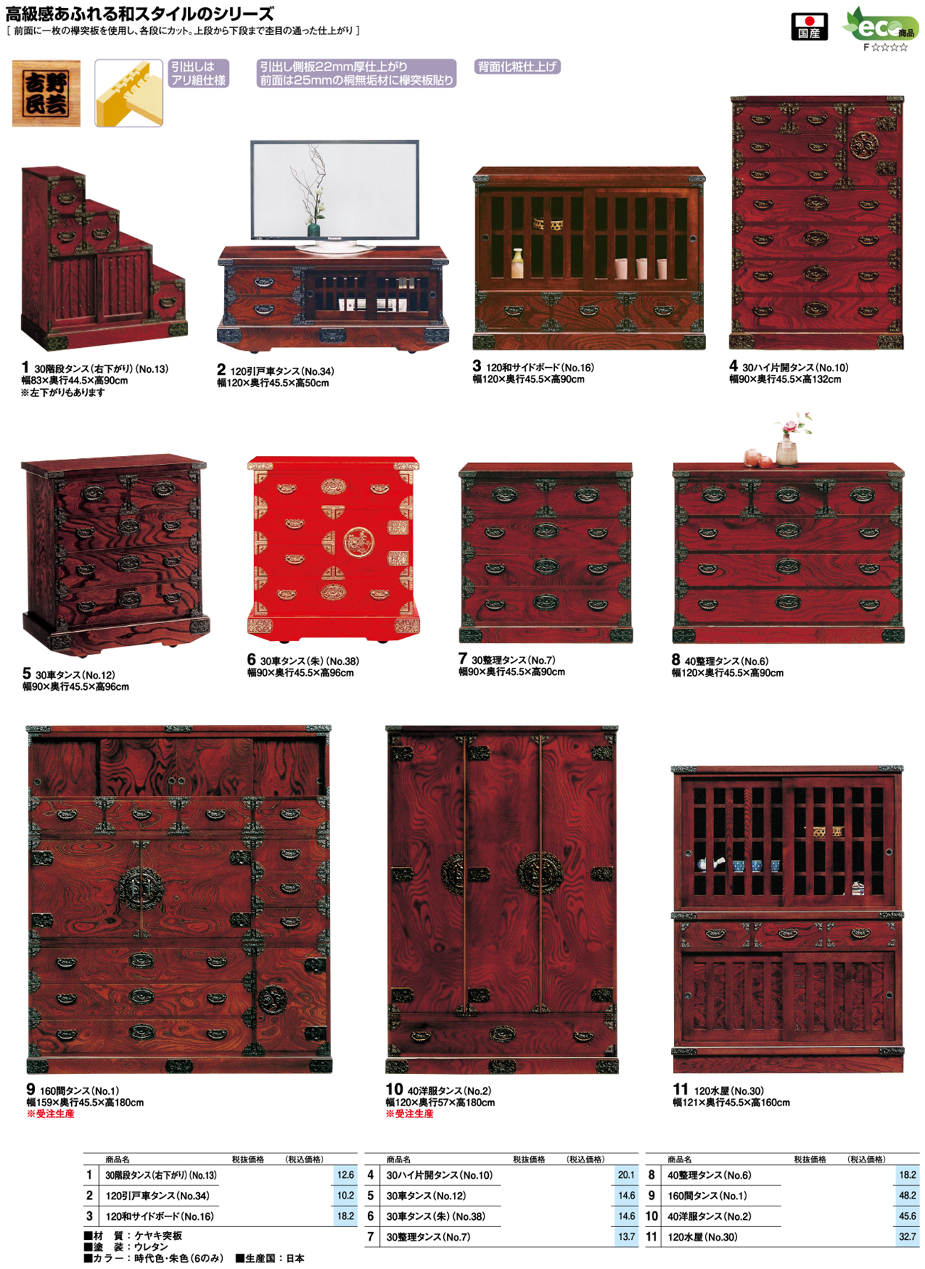 • 30車タンス(朱)(№38) 税抜326, 480円 (税込359, 128円)