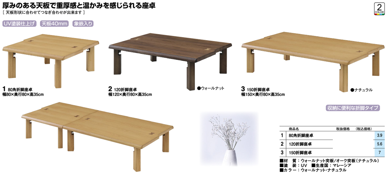 - 80角折脚座卓 税抜29, 360円 (税込32, 296円)