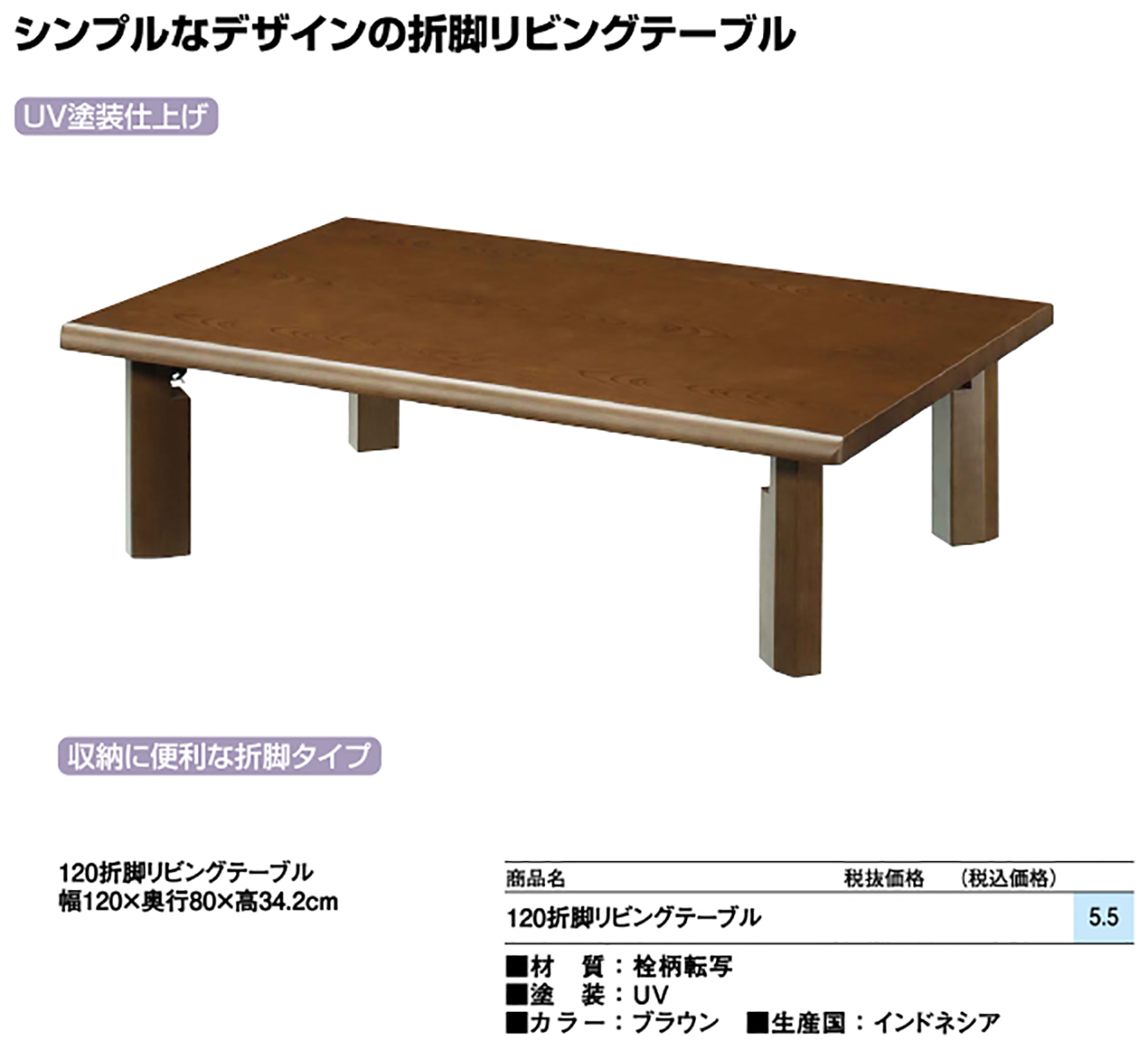 - 120折脚リビングテーブル 税抜28, 000円 (税込30, 800円)
