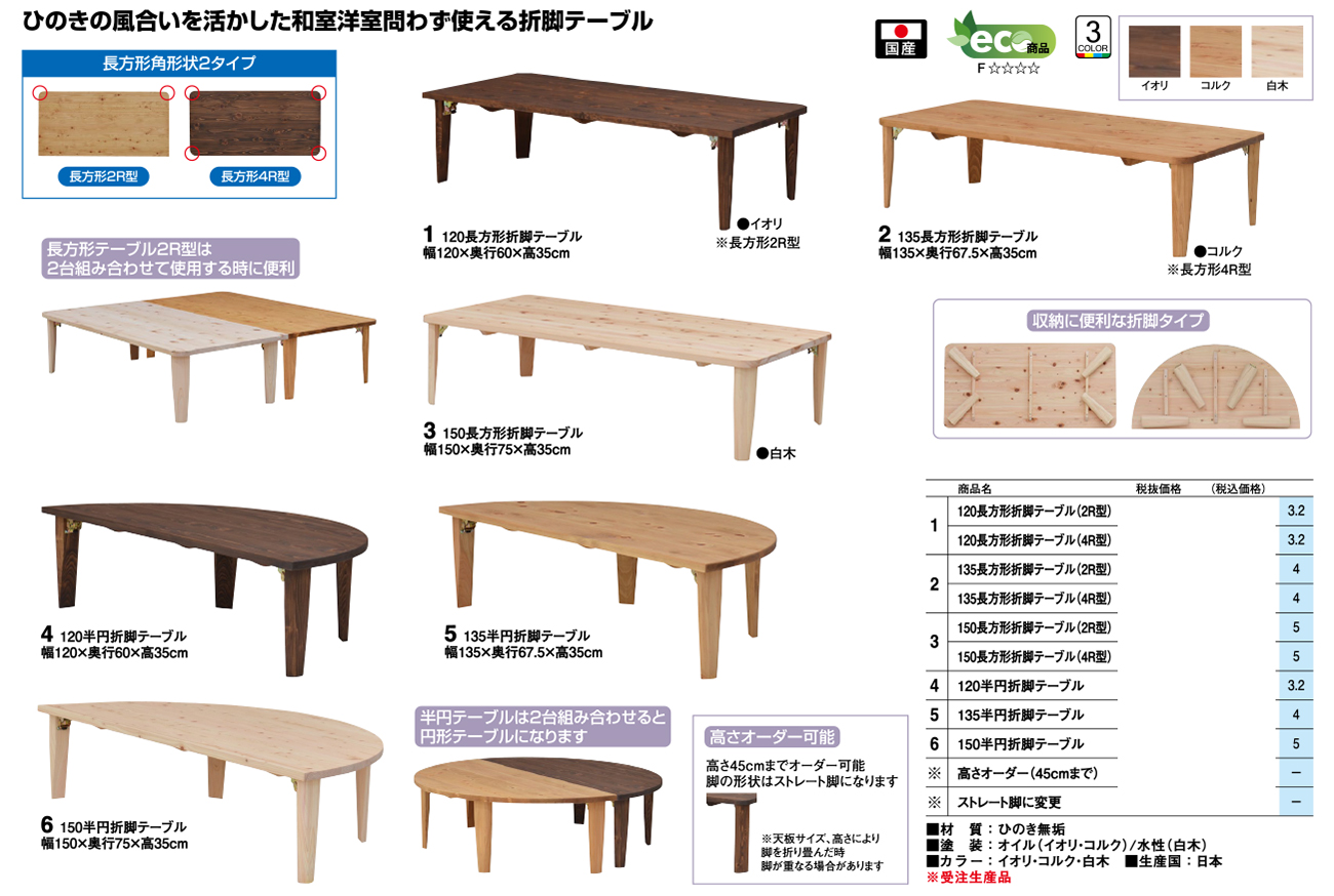 - 120半円折脚テーブル 税抜56, 000円 (税込61, 600円)