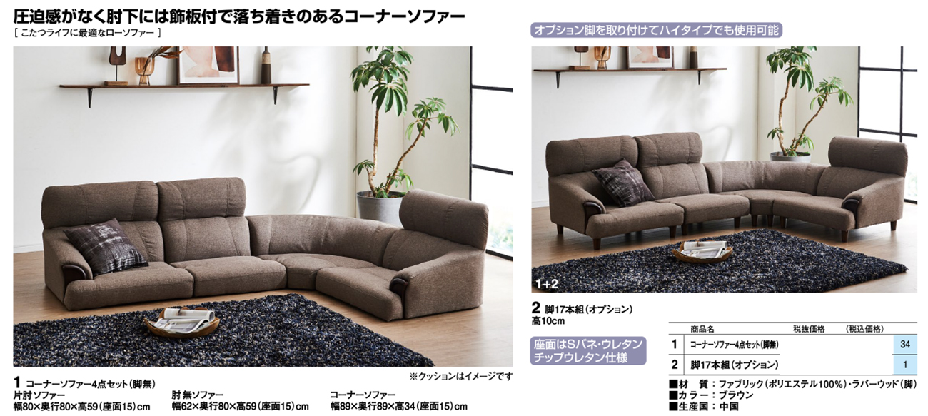 - コーナーソファー4点セット(脚無) 税抜100, 800円 (税込110, 880円)
