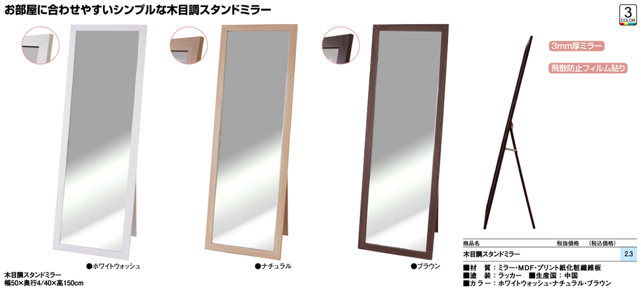 - 木目調スタンドミラー 税抜10, 400円 (税込11, 440円)