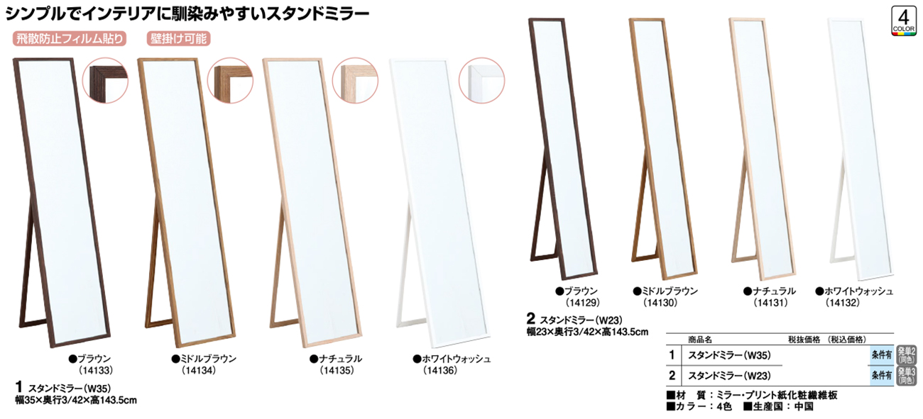 - スタンドミラー(W35) 税抜6, 880円 (税込7, 568円)